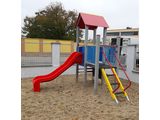 2x věž, skluzavka, stříška ve tvaru "A", 4x bariéra z HDPE, šikmý výlez s nášlapy a kovovými madly, počítadlo, kreslící tabule. Více informací