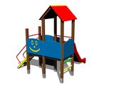 2x věž, skluzavka, stříška ve tvaru "A", 4x bariéra z HDPE, šikmý výlez s nášlapy a kovovými madly, počítadlo, kreslící tabule. Více informací