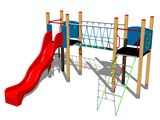 2x věž, skluzavka, 3x bariéra z HDPE, kolmý žebřík, lanový most mezi věžemi, šikmý síťový výlez. Více informací