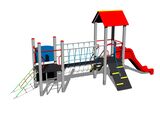 2x věž, skluzavka, stříška ve tvaru "A", bariéra, šikmý výlez s nášlapy a kovovými madly, šikmý výlez s lanem a nášlapy z HDPE, most s lanovým zábradlím mezi věžemi, kolmý žebřík, šikmý síťový výlez, kreslící tabule. Více informací