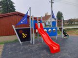 2x věž, skluzavka, kovová bariéra osazená do kovového rámu, 2x stožár s vlajkou, kreslící tabule, šikmý výlez s lanem a nášlapy z HDPE, most s lanovým zábradlím mezi věžemi, šikmý síťový výlez, bariéra s průzory (podpalubí), kotva, kormidlo z HDPE, 2x bariéra z HDPE. Více informací