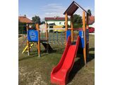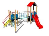 2x věž, skluzavka, stříška ve tvaru "A", šikmý výlez s nášlapy a kovovými madly, kolmá lezecká stěna na věži, šikmý výlez s lanem a nášlapy z HDPE, lanový most mezi věžemi, šplhací síť 2 x 2 m, 2x bariéra z HDPE . Více informací