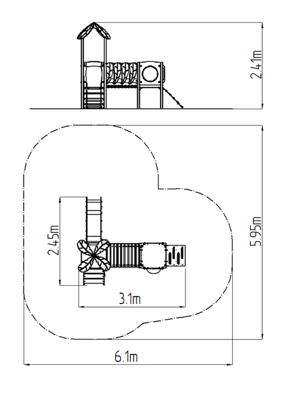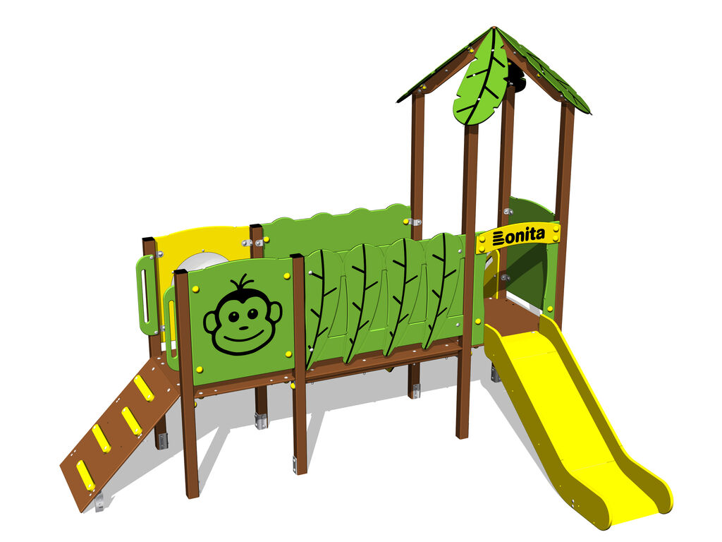 2x Věž, skluzavka, stříška ve tvaru listu, šikmý výlez s nášlapy a madly z HDPE, šikmý výlez s nášlapy z HDPE, průzor, most s plastovým zábradlím, 2x bariéra. Více informací