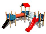 3x věž, skluzavka, stříška ve tvaru "A", 5x bariéra z HDPE, kolmý žebřík, šikmá lezecká stěna, lanový most mezi věžemi, prolézací tunel mezi věžemi. Více informací