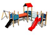 Sedátko a houpačkové závěsy nejsou součástí houpačky. Nutné přikoupit sedátko (1 ks) dle výběru a houpačkové závěsy (2 ks). 3x věž, skluzavka, stříška ve tvaru "A", 5x bariéra z HDPE, kolmý žebřík, šikmá lezecká stěna, lanový most mezi věžemi, prolézací tunel mezi věžemi, kovové ráhno. Více informací