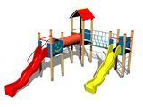 3x věž, 2x skluzavka, stříška ve tvaru "A", 3x bariéra z HDPE, kolmý žebřík, lanový most mezi věžemi, prolézací tunel mezi věžemi, šikmý síťový výlez, šikmý výlez s nášlapy a kovovými madly. Více informací