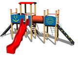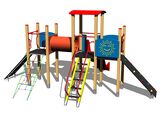 3x věž, skluzavka, stříška ve tvaru obloukovém, šikmý síťový výlez, šikmý výlez s nášlapy a kovovými madly, 3x bariéra z HDPE, prolézací tunel, šikmý výlez s lanem, šikmá lezecká stěna. Více informací