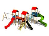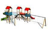 Sedátko a houpačkové závěsy nejsou součástí houpačky. Nutné přikoupit sedátko (2 ks) dle výběru a houpačkové závěsy (4 ks). 3x věž, skluzavka, tobogán, 3x stříška ve tvaru "A", 6x bariéra z HDPE, lanový most mezi věžemi, šikmý výlez s lanem a nášlapy z HDPE, šikmý výlez s nášlapy a kovovými madly, šplhací síť 2x2 m, prolézací tunel mezi věžemi, kovové ráhno. Více informací