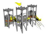 3x věž, 2x skluzavka, 4x bariéra z HDPE, šikmý síťový výlez, šikmý lanový most mezi věžemi, kolmá lezecká stěna na věži s nášlapy, vlajka, 3x cimbuří z HDPE, lanový most s nášľapy. Více informací