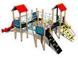 4x věž, 2x skluzavka, 2x stříška ve tvaru "A", 3x bariéra z HDPE, kolmý žebřík, šikmý výlez s nášlapy a kovovými madly, šikmý výlez s lanem a nášlapy z HDPE, 2x lanový most mezi věžemi, 2x most s lanovým zábradlím mezi věžemi. Více informací