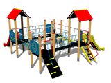 4x věž, 2x skluzavka, 2x stříška ve tvaru "A", 3x bariéra z HDPE, kolmý žebřík, šikmý výlez s nášlapy a kovovými madly, šikmý výlez s lanem a nášlapy z HDPE, 2x lanový most mezi věžemi, 2x most s lanovým zábradlím mezi věžemi. Více informací
