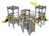 4x věž, 2x skluzavka, 4x bariéra z HDPE, šikmý síťový výlez, 2x lanový most mezi věžemi, kolmá lezecká stěna na věži s nášlapy, vlajka, 2x cimbuří z HDPE, 2x lanový most s nášľapy. Více informací