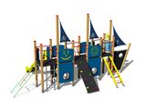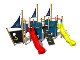 5x věž, 2x skluzavka, kovová bariéra osazené do dřevěného rámu, 3x stožár s vlajkou, kreslící tabule, šikmý výlez s lanem a nášlapy z HDPE, šikmý síťový výlez, šikmá lezecká stěna, šikmý žebříkový výstup s kovovými nášlapy, kolmý žebřík, 4x bariéra s průzorem, kotva, kormidlo z HDPE, 4x bariéra z HDPE. Více informací