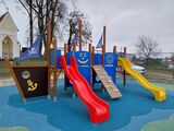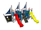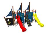 5x věž, 2x skluzavka, kovová bariéra osazené do kovového rámu, 3x stožár s vlajkou, kreslící tabule, šikmý výlez s lanem a nášlapy z HDPE, šikmý síťový výlez, šikmá lezecká stěna, šikmý žebříkový výstup s kovovými nášlapy, kolmý žebřík, 4x bariéra s průzorem, kotva, kormidlo z HDPE, 4x bariéra z HDPE. Více informací