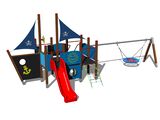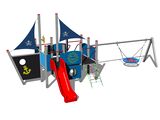 6x věž, 2x skluzavka, šikmý výlez s nášlapy a kovovými madly, kreslicí tabule, 2x stožár s vlajkou, kormidlo, kotva, řetězová houpačka, 2x bariéra s průzorem, 4x bariéra z HDPE, 2x kovová bariéra usazená do kovového rámu, šikmý síťový výlez. Více informací