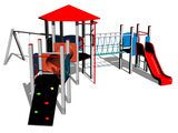 Skluzavka je vyrobená ze sklolaminátu. Čelo skluzavky, nášlapy atd. jsou vyrobeny z vysoce kvalitního plastu HDPE (vysokotlaký, celoprobarvený polyetylen, který se vyznačuje vysokou barevnou stálostí, odolnosti proti UV záření a hlavně bezpečností, protože je nelámavý a nehrozí tak žádné nebezpečí zranění dětí ostrými úlomky). Lanový most je vyroben z materiálu HERKULES (16 mm lana z polypropylenu s vnitřním ocelovým jádrem) a je spojován plastovými nebo hliníkovými spoji. Podesty a šikmá lezecká stěna jsou vyrobeny z HPL (vysokotlaký laminát, který se vyznačuje vysokou barevnou stálostí, odolností proti poškrábání a odolností proti vodě). Horolezecké chyty jsou vyrobeny z křemičitého písku a epoxidové pryskyřice, což zaručuje dlouhou životnost, stálobarevnost i šetrný povrch pro kůži. Veškerý spojovací materiál je pozinkovaný nebo nerezový.