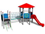 Věž čtyřboká, věž šestiboká, skluzavka, stříška, šikmý síťový výlez, lanový most mezi věžemi, kolmý žebřík, 5x bariéra z HDPE. Více informací