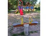Vahadlová jednohoupačka na pružině VH102K - na výběr jsou tři barevné varianty: modrá, červená a hnědá, jako dopadová plocha postačí trávník. Více informací