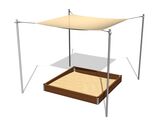 Nosná konstrukce zastínění pískoviště je vyrobena z konstrukční oceli, která je proti korozi chráněna žárovým zinkováním, čímž se docílí velmi výrazného prodloužení životnosti herního prvku. Tato konstrukce je uložena do betonového lože. Zastínění pískoviště je vyrobena z pogumované polyesterové sítě, odolné proti UV záření. Zastínění pískoviště je vodě propustné.Všechen spojovací materiál je pozinkovaný nebo nerezový.