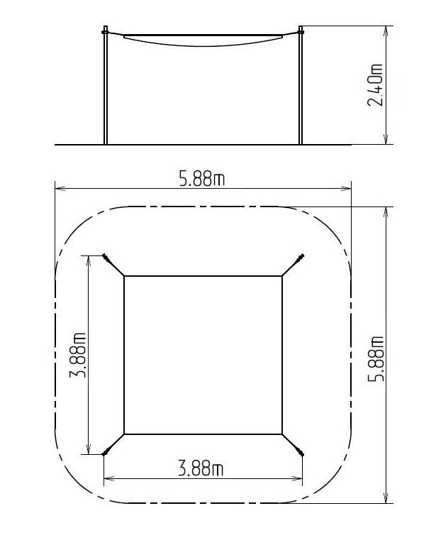 | Plocha nutná pro montáž: | 5,88 x 5,88 m |