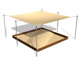 Nosná konstrukce zastínění pískoviště je vyrobena z konstrukční oceli, která je proti korozi chráněna žárovým zinkováním, čímž se docílí velmi výrazného prodloužení životnosti herního prvku. Tato konstrukce je uložena do betonového lože. Zastínění pískoviště je vyrobena z pogumované polyesterové sítě, odolné proti UV záření. Zastínění pískoviště je vodě propustné.Všechen spojovací materiál je pozinkovaný nebo nerezový.